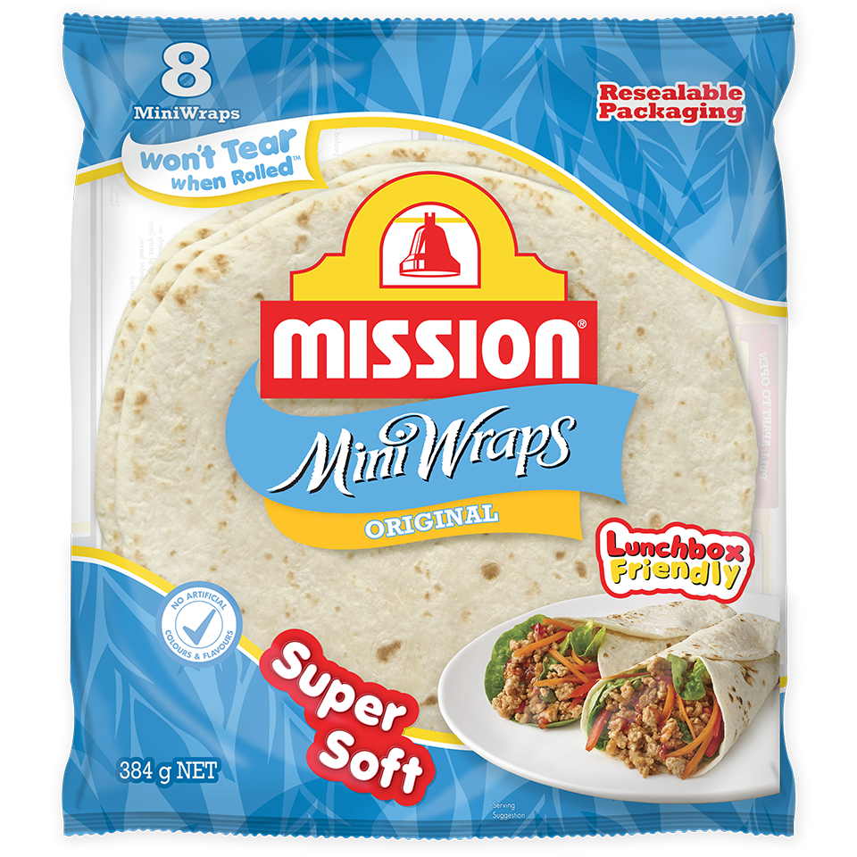 Mini Wraps are ideal for mini fingers, perfect in size for kids lunches or as a snack! Made in our renowned super soft formula, they won’t split making it easy to wrap or roll anything!